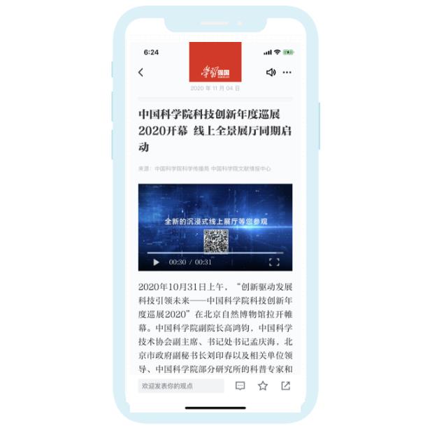 打造場景語境、突出中科院特色、結(jié)合時(shí)代潮流、引入720度全景等技術(shù)手段,中國科學(xué)院科技創(chuàng)新年度巡展用更加鮮活的方式向社會(huì)公眾傳播最新的前沿科研成果和重大科研進(jìn)展,在社會(huì)各界引起熱烈反響,并登上學(xué)習(xí)強(qiáng)國APP。